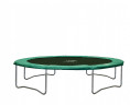 Соединение с рамой - 96 оцинкованных конусообразных пружин длиной 21,5 см, запатентованного дизайна: разработанные пружины более эластичные и, соответственно, более безопасные в использовании, прыжки в результате мягче и точнее. Качественный защитный мат шириной 36 см и толщиной 2,5 см полностью закрывает раму и пружины. Верхний и нижний слои мата произведены из плотного PVC, наполнитель EPE (см. рис.). Прыжковое полотно, устойчивое к ультрафиолетовому воздействию, из тканного полипропилена американской компании TenCate Geosynthetics торговой марки « PERMATRON».