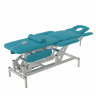 Основная особенность массажного стола с электроприводом — его улучшенный функционал. Данная модель состоит из 9 секций: подголовник, спинка, подставка для ног, и шесть подлокотников. Для регулировки положения стола присутствует электрический привод, управляемый с помощью ручной педали. Конструкторы предусмотрели всё для комфорта пациента и специалиста.